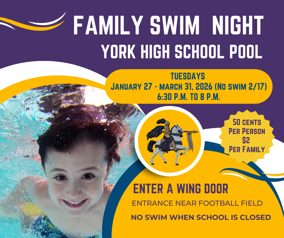There are no swim activities during school recesses, holidays, and emergency school closing days. We will have water aerobics on Thursday, January 29 from 6:15 p.m. to 7:30 p.m. to make up for the lost class on Monday, January 26, 2026.