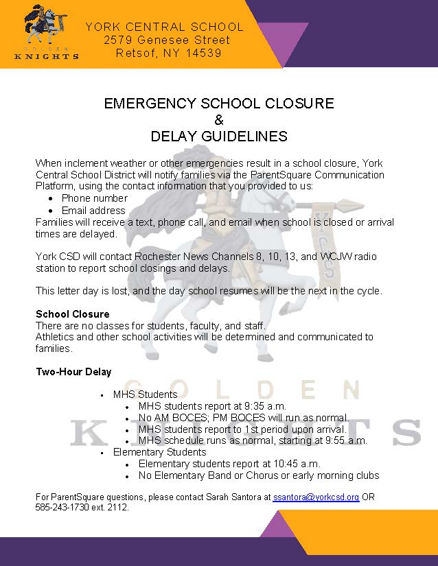 Our new website is a work in progress. Please contact Sarah Santora at 585-243-1730 ext. 2112 or by email ssantora@yorkcsd.org, if you need assistance locating information.
